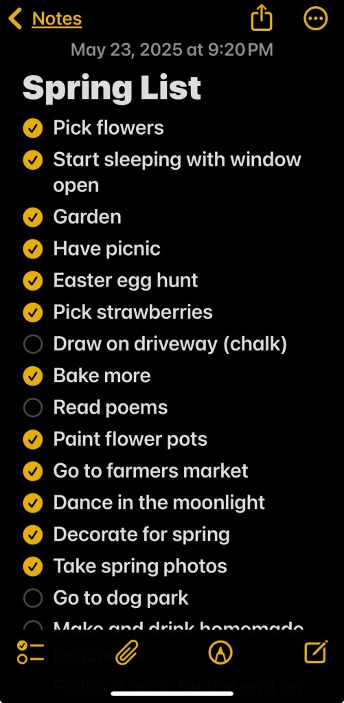 What is your favorite season or holiday? My two favorite seasons are Spring and Autumn. With spring, I love watching things come back to life, flowers blooming and the air starting to feel just right. I remember earlier this year, I created I spring bucket list, some of things I did was decorated for spring, picked strawberries and make strawberry jam, have a picnic and go to farmers market.